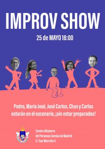 El día 25 de mayo tendremos un Impro-Show con cinco personas sordas como invitados. Nos harán reír, llorar, pensar o sentir, sin llevar nada preparado.